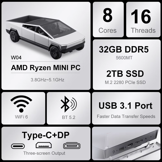 2024 new Cyber truck Mini PC Ryzen7 8845HS Octa Core DDR5 SSD New CyberTruck Box car Mini PC Computer gaming