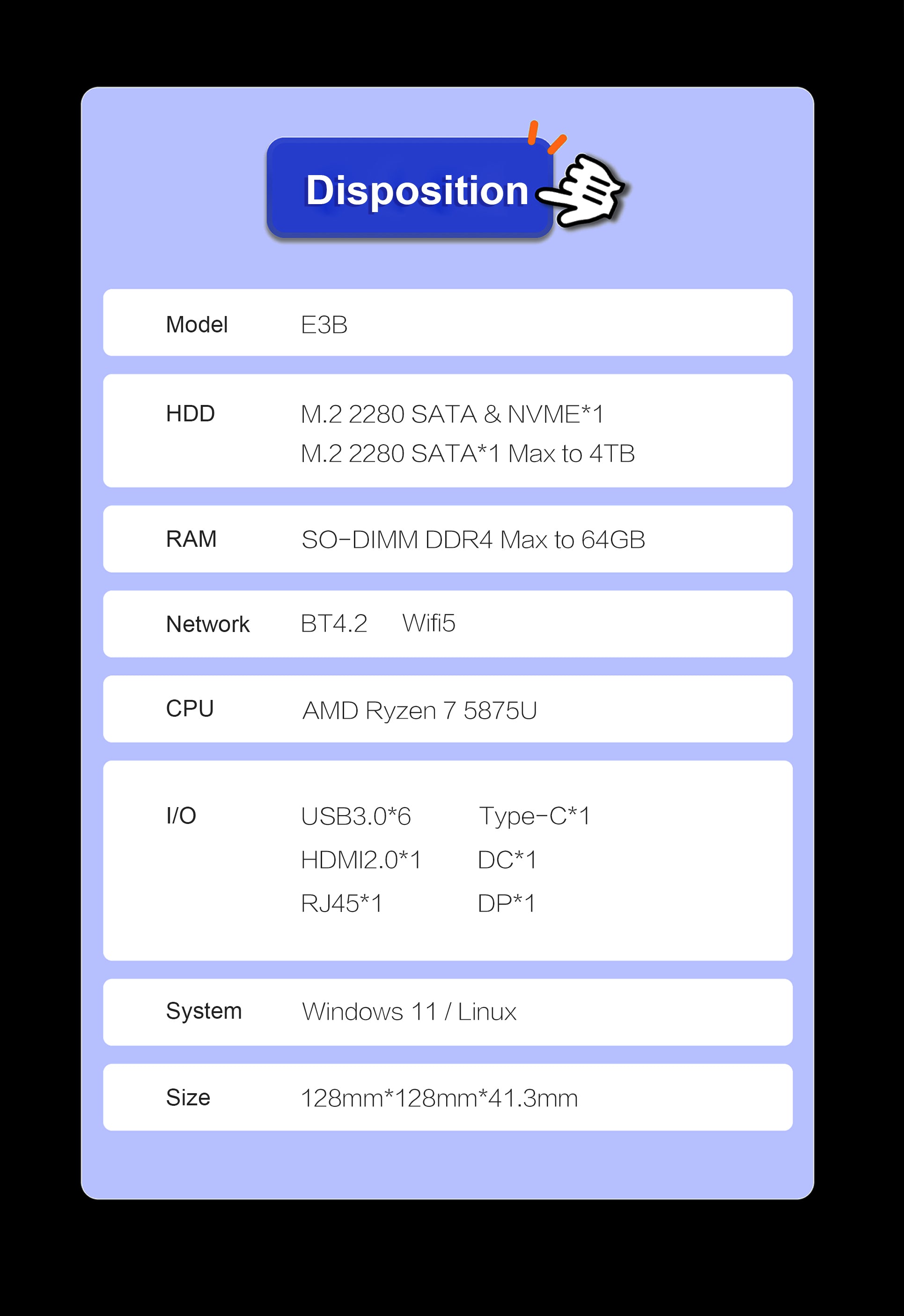 Mini Pc Gaming E3B AMD Ryzen 9 6900HX 7940HS 8845HS Mini PC Windows 11 Pro DDR5 NVMe 4USB Type-C Mini Gaming PC